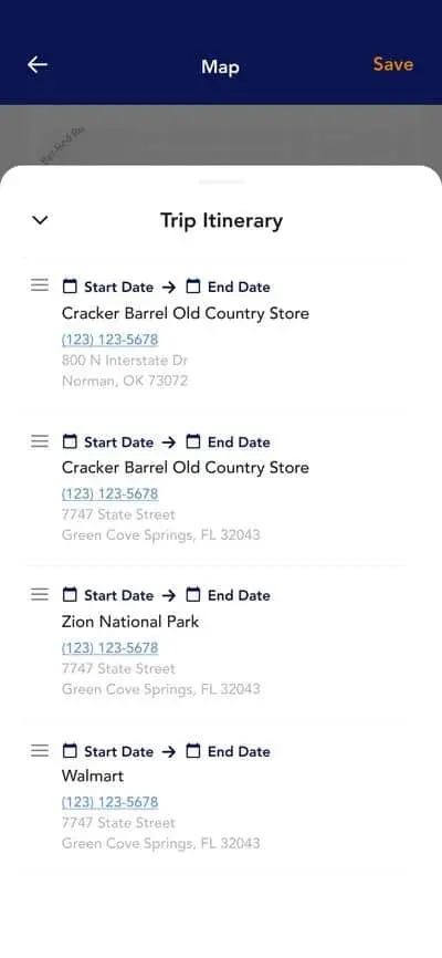 Waypoints on Camping.Tools are destinations on your itinerary that you plan to visit during your camping trip.